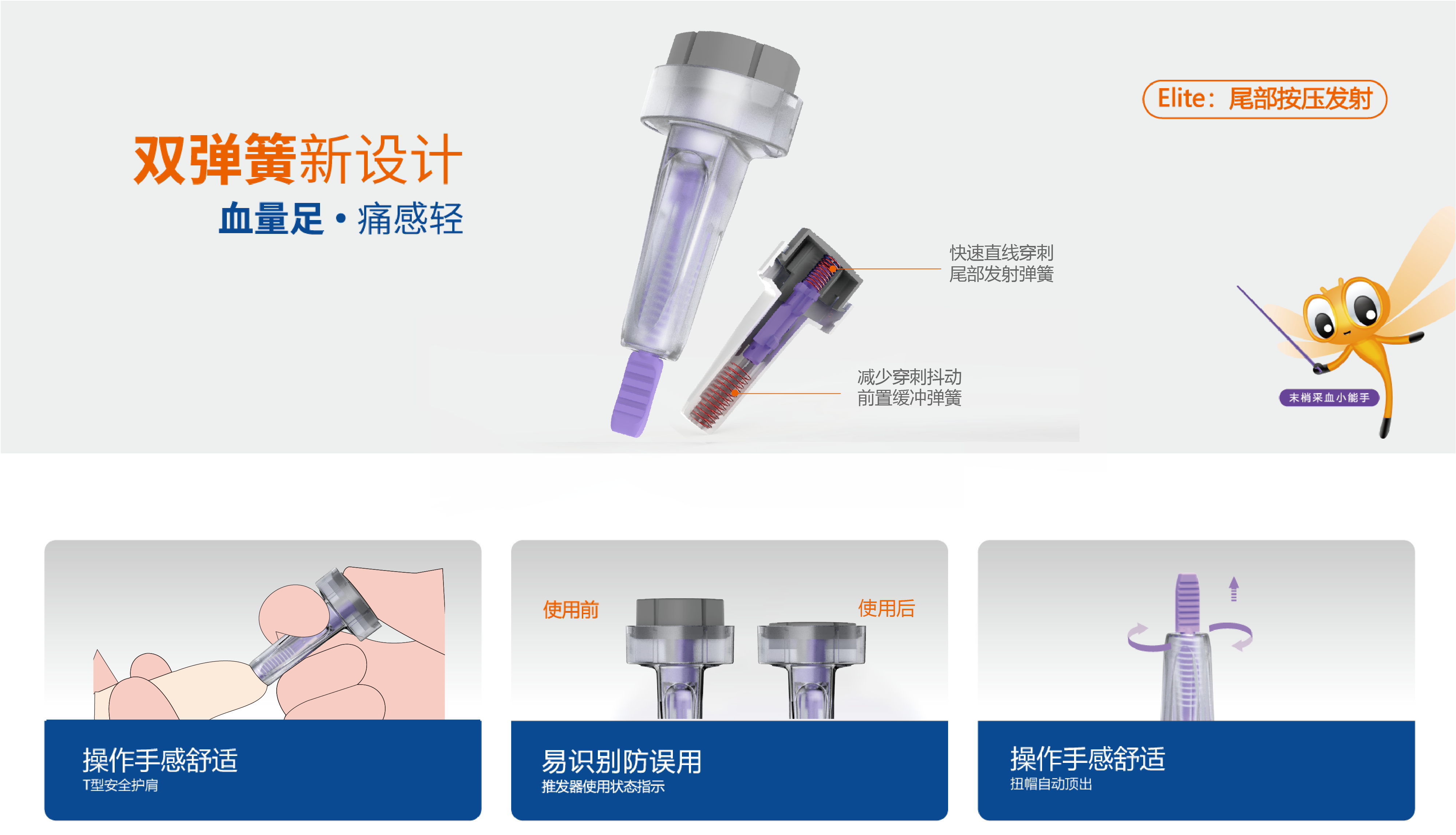 血器,穿刺深度可有多種選擇,應(yīng)根據(jù)檢測(cè)項(xiàng)目選擇合適的采血器。