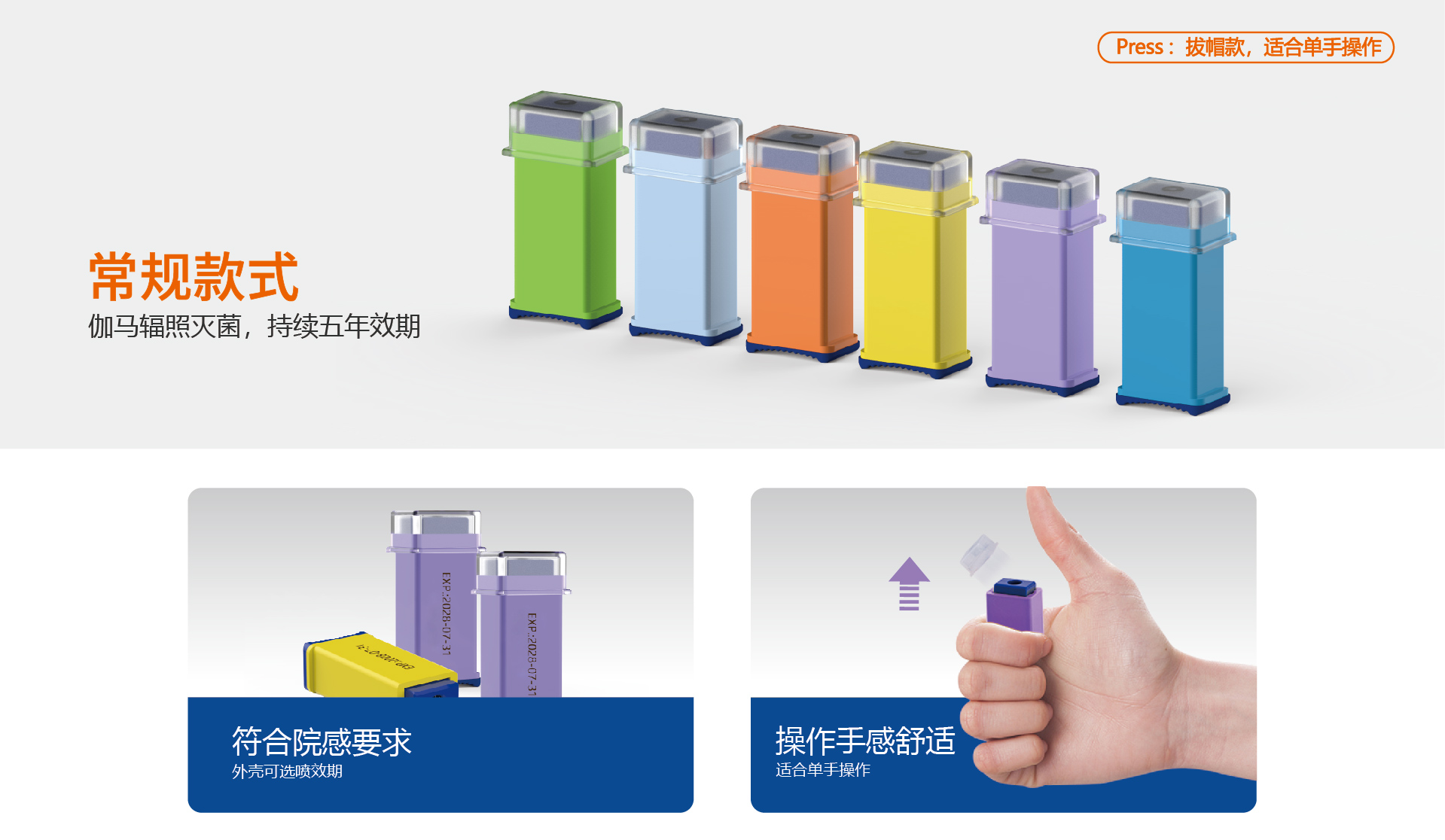 | 顏色 | 產(chǎn)品代號 | 規(guī)格 | 刺穿深度 | 參考血量 | 標準包裝 |